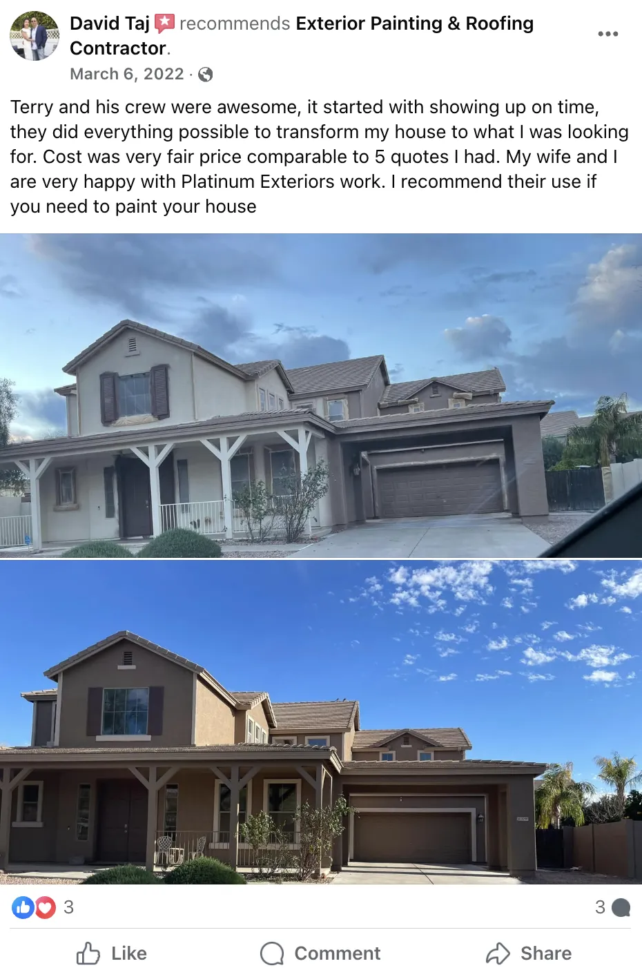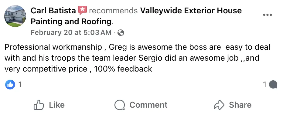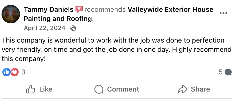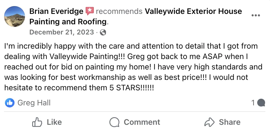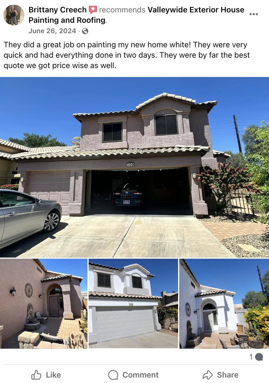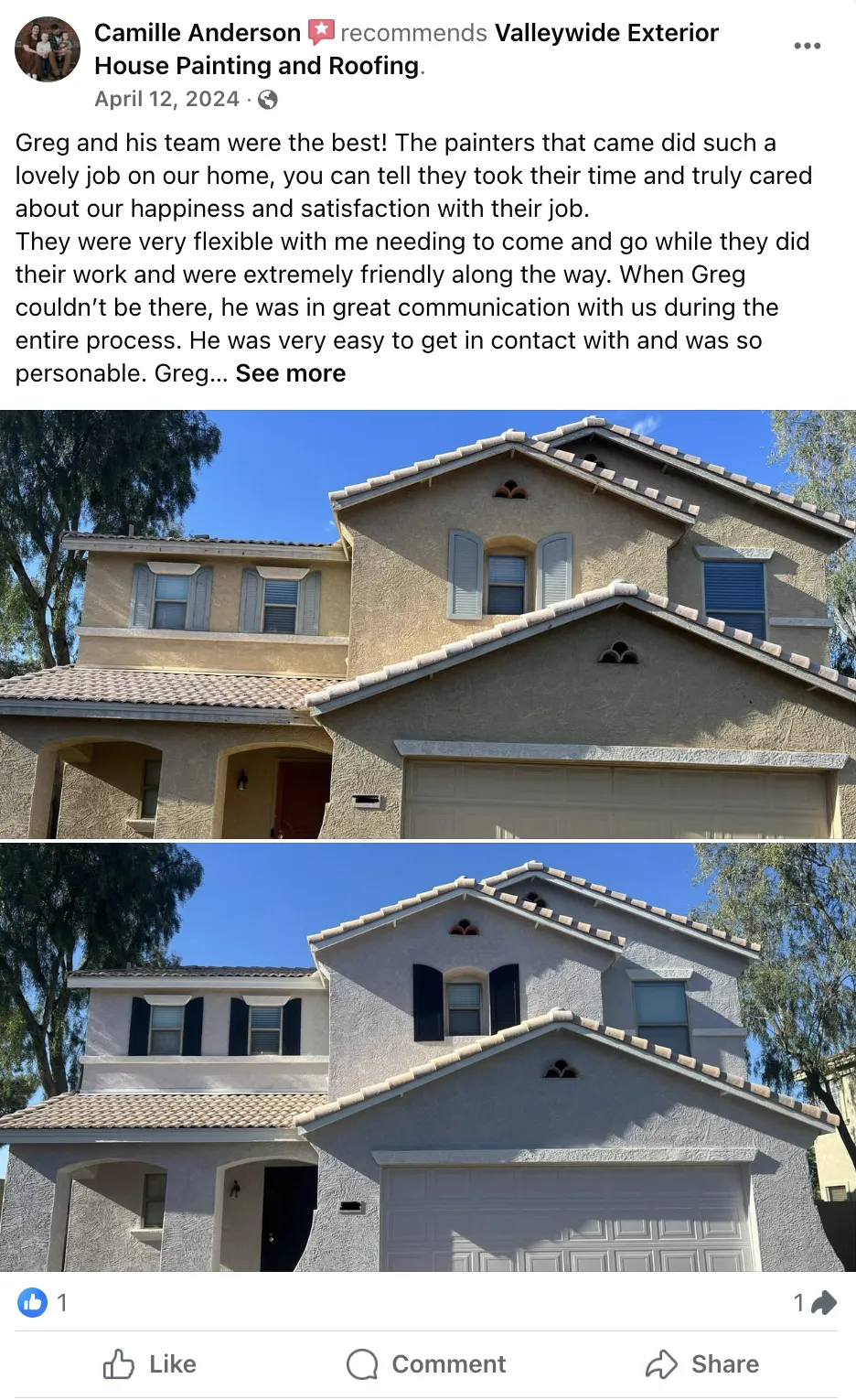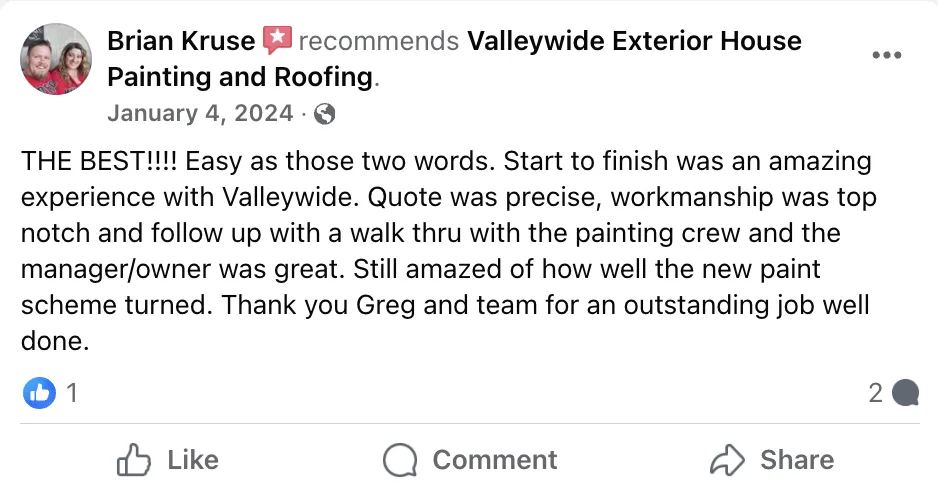 At ValleyWide Home Pros, we determine the pricing for our exterior paint projects by using the square footage and property details available from publicly accessible real estate websites. This approach allows us to provide accurate and fair estimates tailored to the specifics of your home. We take into consideration the size of your property and any unique features or requirements it may have to ensure that our quote is comprehensive and competitive, giving you the best possible value for our services.